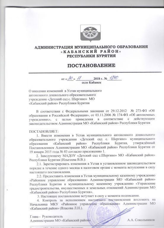 Устав Детский сад Шергино 2022